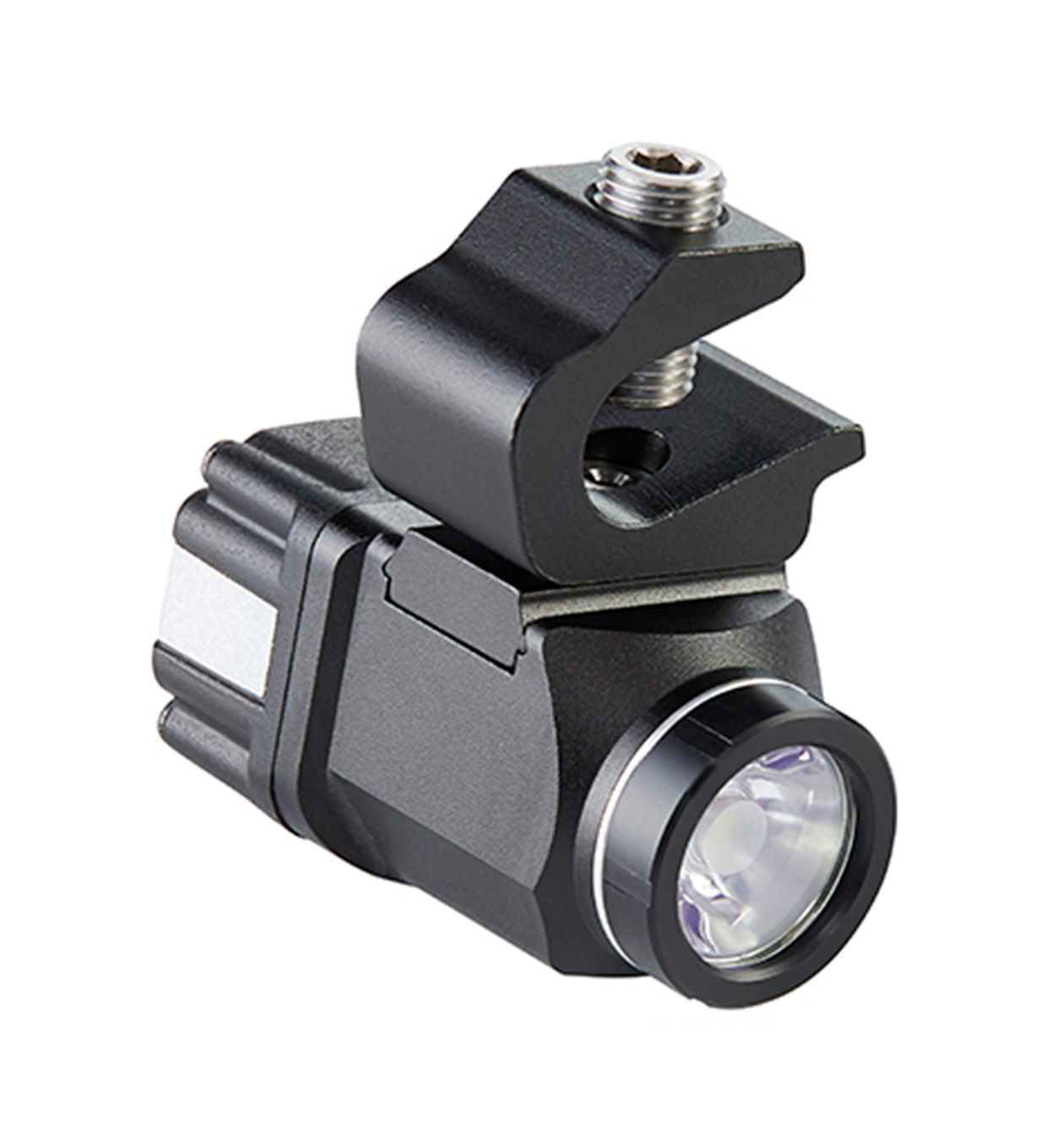 Fabricada en aluminio de alta resistencia con lente de vidrio Boro Float, pesa solo 103,5 gramos y mide 6,01 cm de largo, ideal para largas jornadas.
